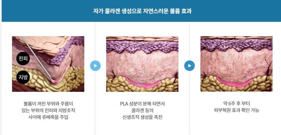 皮膚に注入された後、すぐにボリューム効果が現れる他のフィラーとは異なり、自己コラーゲン生成を促進して自然なボリュームを作り出し、皮膚の弾力、細かいしわ、肌質の改善にも効果があります。