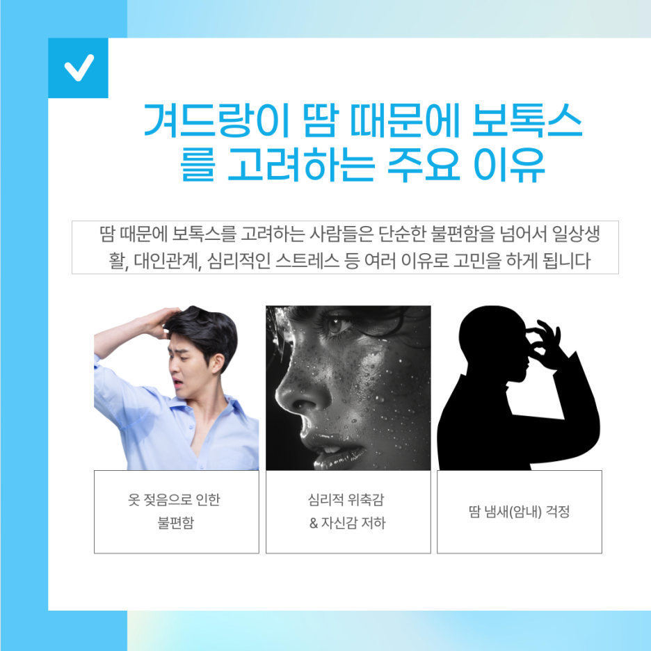ボツリヌス毒素は汗の分泌を抑えることにも非常に効果的です。